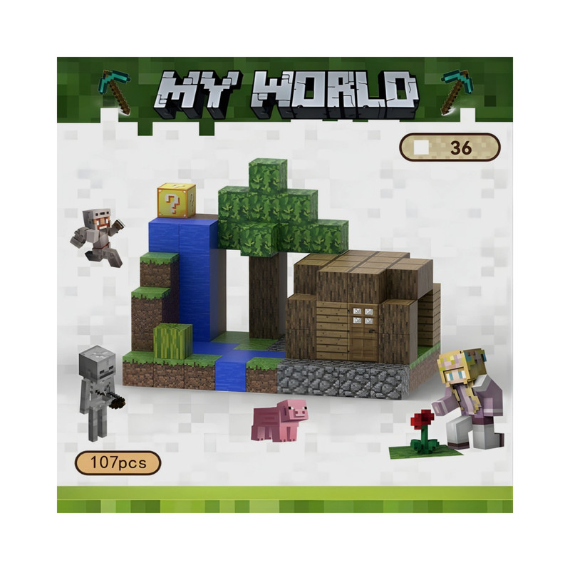 خلق دنیای ماینکرافت با آهنربا! این مجموعه (مناسب ۳ سال به بالا) با ۱۰۷ قطعه مغناطیسی و ۳ فیگور شخصیت ماینکرافت، امکان ساخت قلعهها و صحنههای بازی را فراهم میکند.